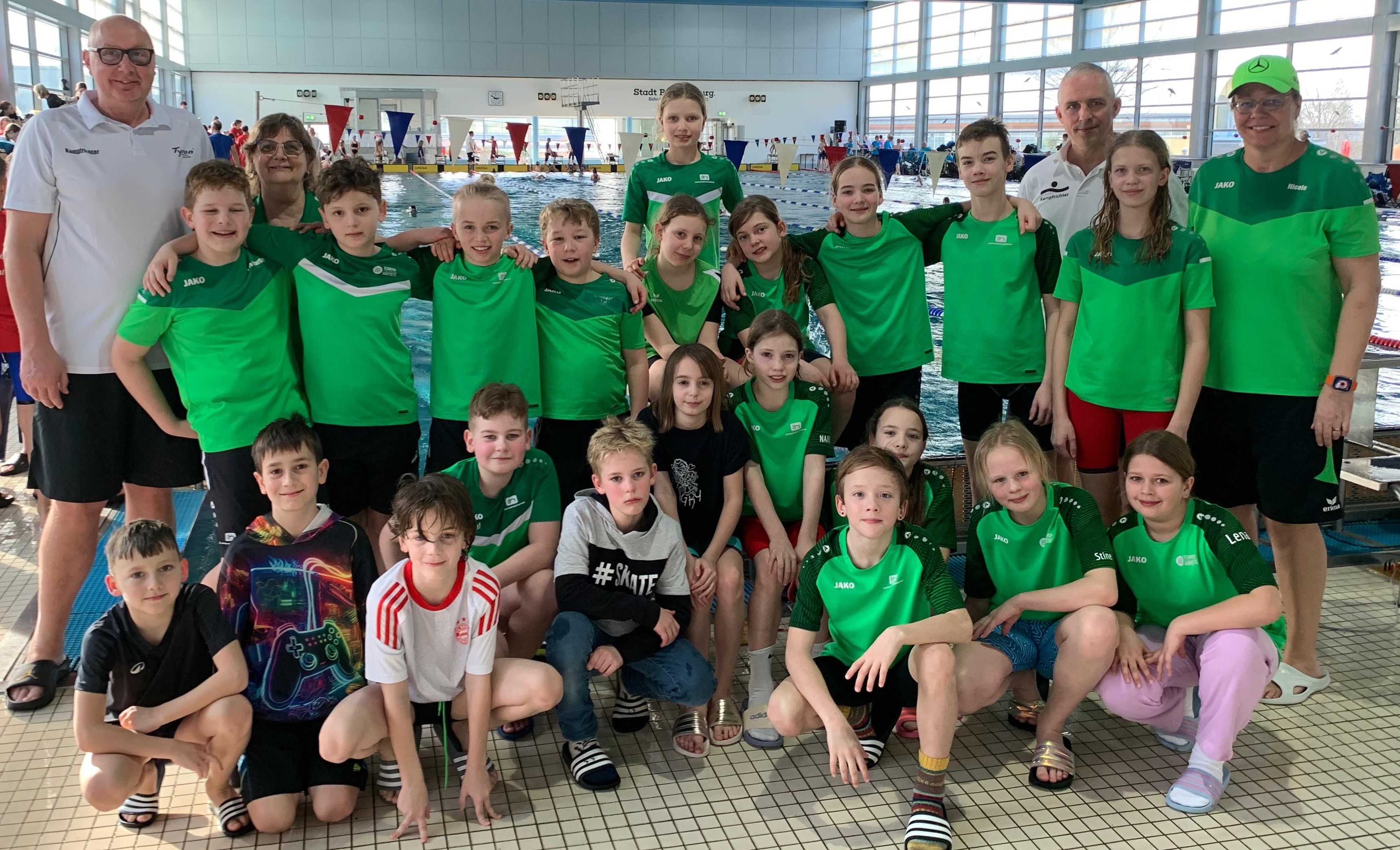 Ein großes Dankeschön geht auch an die vielen fleißigen Helfer am Beckenrand, im Hintergrund und Fahrer zu den Wettkämpfen. Ohne Euch würde das alles nicht funktionieren.