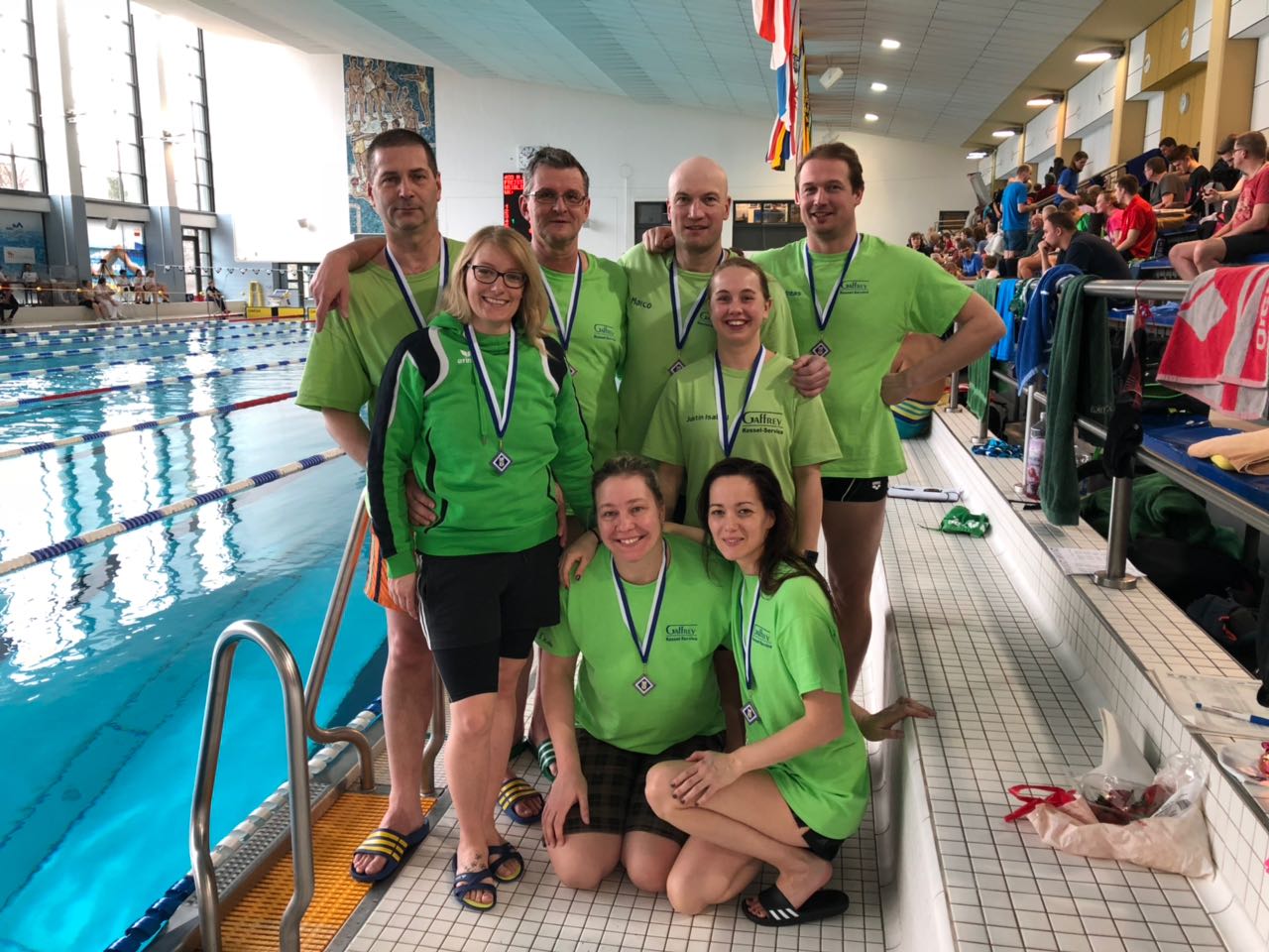 Was vor 4 Jahren noch mit einer Einzelstarterin begann hat längst seine Erweiterung gefunden und am vergangenen Wochenende eine erfolgreiche Mannschaftspremiere sowohl bei den Frauen als auch bei den Männern gefeiert. Bei den Norddeutschen Meisterschaften der Masters in Magdeburg konnten die Schwedter Aktiven 16 Medaillen aus dem Becken der Elbeschwimmhalle fischen. Zum erfolgreichen Team gehörten 4 Männer und Frauen. Sie alle sind bereits seit Jahren oder nach vielen Jahren wieder ein fester Bestandteil in der Abteilung Schwimmen der SSV PCK 90 Schwedt.