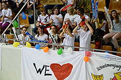Den Abschluss des 4 tägigen Trainingslagers bildete für einige Sportler die Fahrt nach Berlin zu den Deutschen Meisterschaften. Hierfür organisiert die Schwimmjugend Brandenburg alljährlich einen FAN-Block, bei dem zu den Finals für ordentlich Stimmung gesorgt wird. Für die mitgereisten Sportler und Ihre Trainerin Carolin Methke sollte es ein aufregender Nachmittag werden. In der Schwimmhalle an der Landsberger Allee gaben die Stars der nationalen Schwimmszene ihr bestes. Paul Biedermann, Marco Koch, Jenny Mensing, Franziska Hentke oder aber auch die Nachwuchssportler um Anna Dietterle, Selina Hocke uvm. Kämpften um Meistertitel und WM-Normen. Aber auch 3 Schwedter Sportler hatten es auf die Teilnehmer-Liste der Deutschen Meisterschaften geschafft. Die 3 Potsdamer Sportschüler Lydia Reimann, Melvin Imoudo und Steven Kambach zeigten starke Leistungen und stellten ihr Können unter Beweis. Lydia konnte Ihre Bestzeit über die 800m Freistil gleich um satte 8 Sekunden verbessern. Steven schaffte über die 200m Rücken einen tollen dritten Platz im EYOF-Finale und Melvin erreichte sogar 2 EYOF-Finals. Über die 100m Brust belegte er einen guten dritten Platz, über die kurze 50m Distanz konnte er sogar den Sieg davontragen. Herzlichen Glückwunsch.