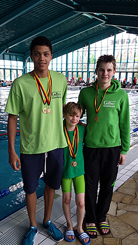 Die Jüngsten Sportler (Jg. 2003/2004) absolvierten hier den sogenannten Jugend- bzw. Schwimmmehrkampf. Dazu mussten sich die Jungen und Mädchen im Vorfeld über die 200m Lagen unter die besten 50 Schwimmer aus Norddeutschland platzieren. Bei den Jungs hatten sich hierfür Anton Buchholz, Oliver Kalk und Pepe Müller qualifiziert. Sie absolvierten in Magdeburg den Jugendmehrkampf, bestehend aus den Strecken 200m Lagen, 100m Freistil, 100m Brust bzw. 100m Rücken, 50m Freistilbeine, 15m Delphin-Beine Tauchen, 7m Gleiten und 400m Freistil. Alle 3 zeigten einen guten Wettkampf und konnten mit etlichen Bestzeiten überzeugen.