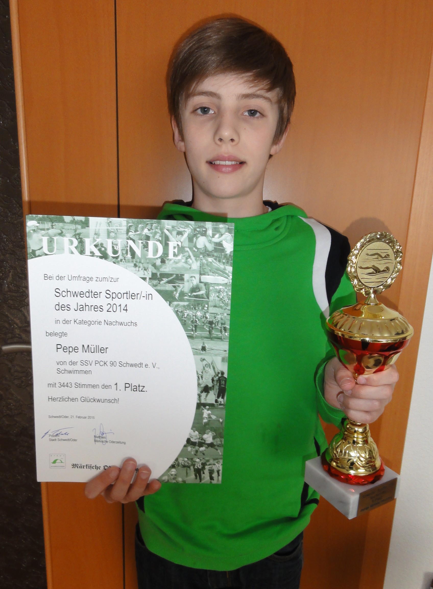Herzlichen Glückwunsch Pepe zum Nachwuchssportler des Jahres 2014 bei der MOZ-Sportlerwahl.