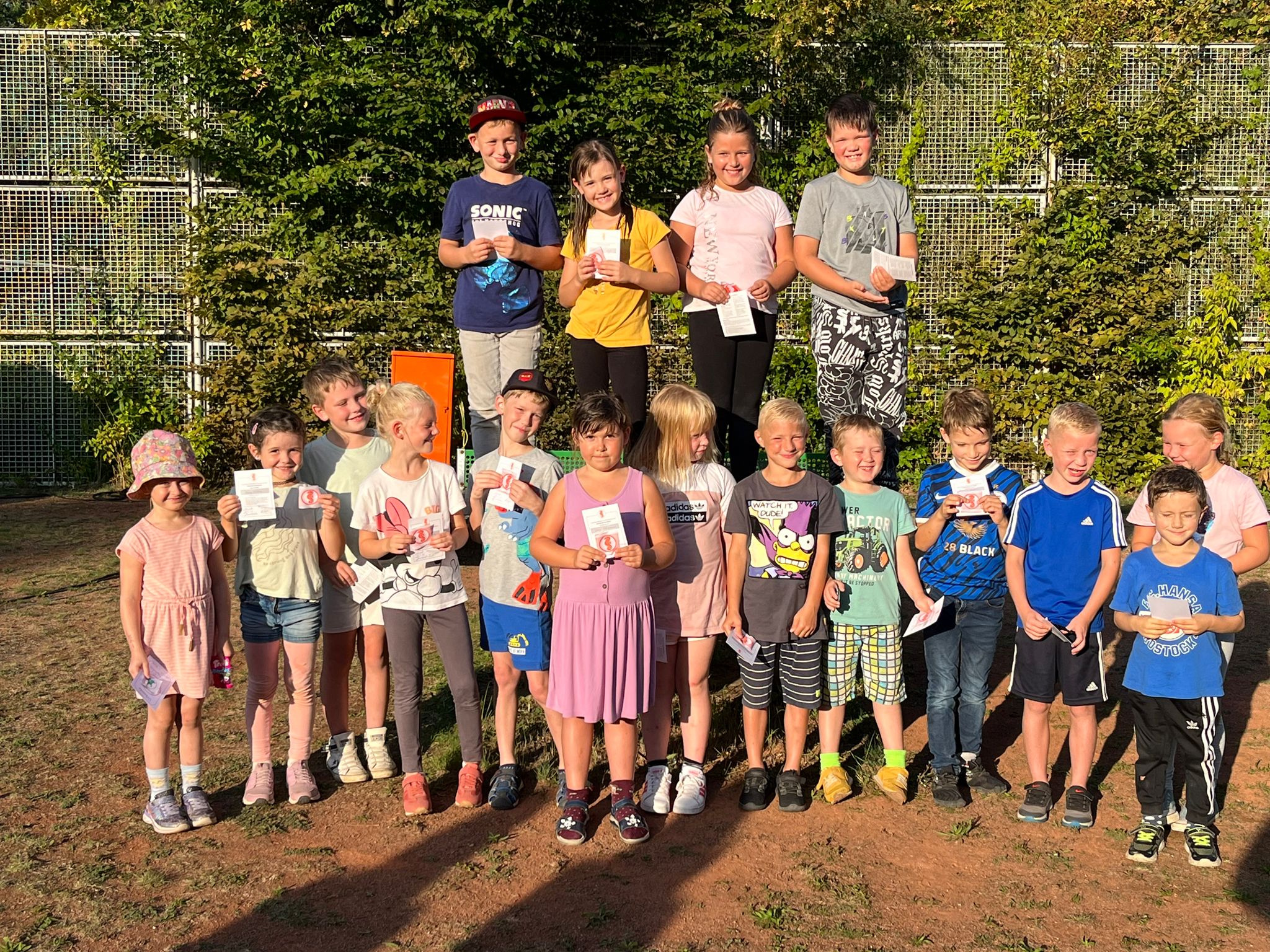 In diesen 6 Wochen haben mehr als 80 Kinder an unseren Schwimmschulkursen teilgenommen. Viele konnten sich am Ende mit dem Seepferdchen belohnen. Einige müssen noch etwas weiter üben, aber den Frosch konnten wir ihnen mit nach Hause geben. Alle waren mit viel Eifer dabei, auch wenn am Anfang die Tränen flossen, haben es die Übungsleiter in den Gruppen geschafft den Kindern die Freude am Wasser zu vermitteln. Selbst die ganz Kleinen die freitags zu Wassergewöhnung kamen hatten ihren Spaß.