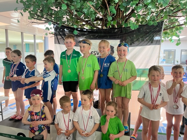 Im Schwimmarten-Mehrkampf ging es dann über 50m Beinbewegung, 100m und 200m einer Schwimmart, sowie über 200m Lagen und 400m Freistil. Hier konnte Pia May Ludwig den Pokal und Goldmedaille und Ida Erhard die Bronzemedaille, beide Jahrgang 2012, über die Rückendisziplin in Empfang nehmen. Marie Ziegerahn Jahrgang 2011 konnte sich ebenfalls in diesem Mehrkampf die Silbermedaille erkämpfen. Phoebe Sturmfels, Jahrgang 2012, absolvierte die Brustdisziplinen und erkämpfte sich die Bronzemedaille. Levi Littmann, Jahrgang 2011, absolvierte die Freistildisziplinen und erkämpfte sich die Silbermedaille. Weitere Teilnehmer waren Celine Werner, Marie Lienert und Janis Lück. Alle 3 sind knapp am Podest vorbei geschwommen und erreichten in ihren Mehrkämpfen jeweils den 4. Platz. Lukas Lemke, Nela Willim und Stella Lotte Krauße konnten sich in diesem großen Starterfeld über neue Bestzeiten freuen. Allen Schwimmerinnen und Schwimmern herzlichen Glückwunsch.